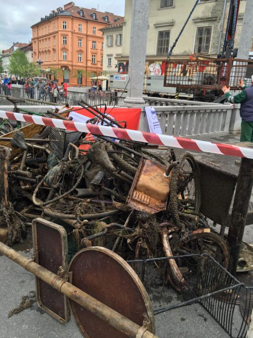 Potapljači, ribiči, čolnarji in reševalci so ob zaključku čistilno-ekološke akcije Za lepšo Ljubljano to soboto čistili Ljubljanico med Špico in Zmajskim mostom. Med navlako, ki so jo potegnili iz ‘Smaragdne ogrlice Ljubljane’, se je znašlo med drugim en kup koles ter celo barskih stolov.
