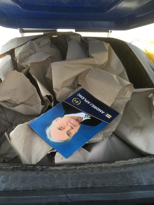 Verjetno je k upoštevanju nalepke za prepoved dostavljanja nenaslovljenih sporočil v predalčnik zavezana le državna pošta, a vendarle opažam, da tovrstno vsiljeno pošto prejemam le od trnovske župnije in, zdaj v predvolilnem času, od SDS. Od dveh organizacij, ki imata preveč denarja, torej.
