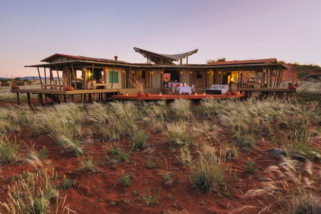 Luksuzni kamp Dunes lodge, del združenja kampov Wolwedans v naravnem rezervatu NamibRand v Namibiji je dokaz, da za sanjske počitnice ne potrebujemo plaže in morja – puščava Namib namreč nudi nešteto osupljivih prizorov, barv in pokrajin, sam kamp pa razvajenim Zahodnjakom zagotavlja vso udobje.