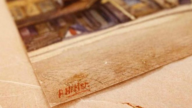 Oče neznane ženske je umetnino za 75 centov kupil na trgu z znamkami in kovanci. Da je podpisana A. Hitler je opazil šele, ko se je vrnil domov.