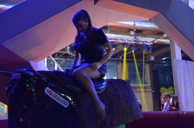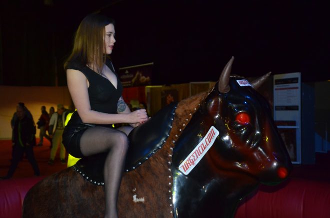 Živahno dogajanje erotičnega sejma je dodatno popestrilo “jahanje” mogočnega mehanskega bika, ki je z vsemi svojimi muhami, konkretno premetaval telesa pogumnih fantov in deklet na vse strani. Prepričali smo se, da je lahko jezdenje ena bolj erotičnih reči za naše oči.