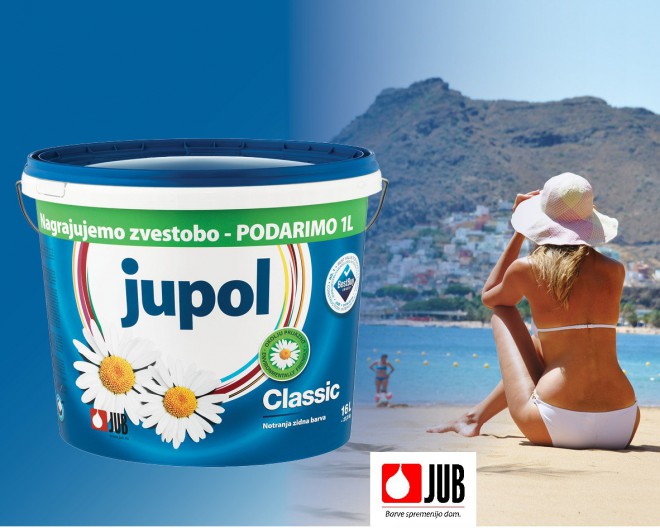 Do 15. oktobra 2016 lahko sodelujete v nagradni igri in se z nakupom 15-l vedra barve JUPOL Classic potegujete za sanjsko potovanje na Tenerife! Ne spreglejte – JUB vam pri nakupu 15-litrske embalaže podari še dodatni liter barve!
