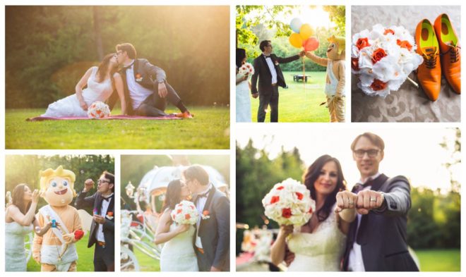 Poroka je bila skrbno in do potankosti načrtovana, zagotovili smo jima namreč profesionalno poročno organizatorico, ki je poskrbela za prav vsak detajl pred in na poroki. Prihod s kočijo, sprehod po rdeči preprogi do oltarja, čudovito urejena nevesta Romana in prekrasen ženin Marko, oltar ob ribniku, … Vse to je dajalo vtis, kot da gledamo romantičen film nagrajen z oskarjem. Dan, ki bo zagotovo ostal v njunih srcih in spominu za kar je poskrbela tudi fotografinja KMarcella.