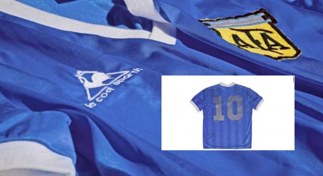 Modri dres s številko 10 je bil od četrtfinalne tekme leta 1986 v lasti nekdanjega angleškega vezista Steva Hodgea, ki je po kontroverznem obračunu izmenjal dres z argentinskim zvezdnikom, piše AFP.
